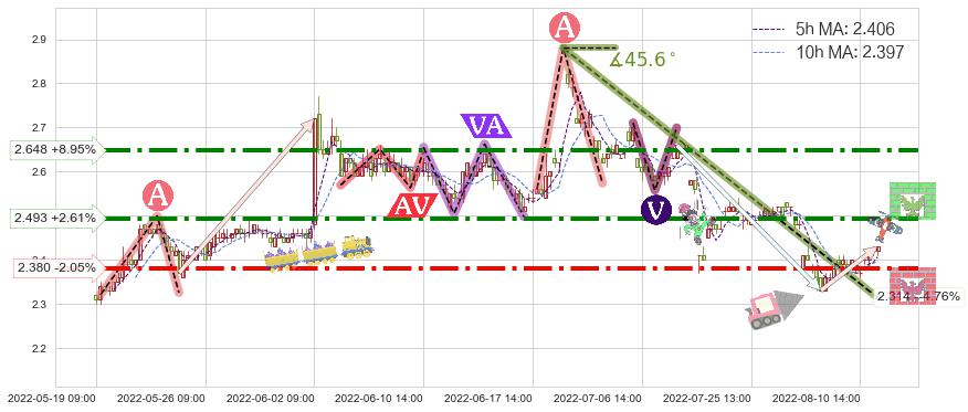 ♘ 阻力价格位2.648,可信任强度72.11%,距离最后交易2022-08-12 14:00形成的收盘价格2.430相差 +8.95%