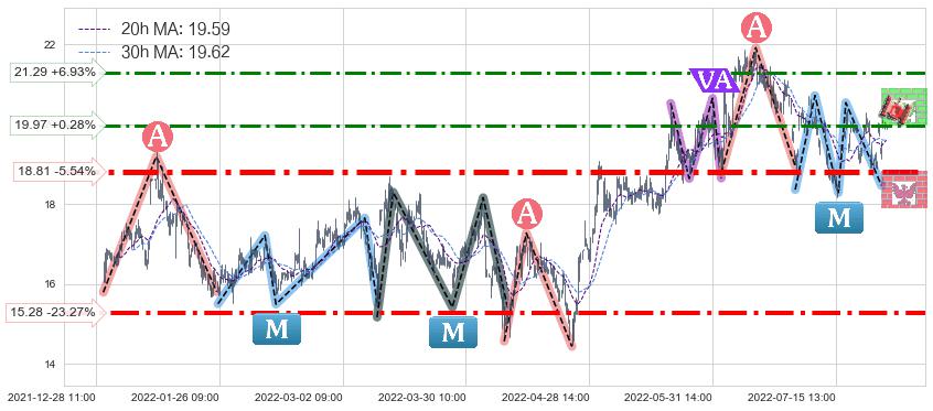 ♞ 20小时均线:19.59,30小时均线:19.62→ 快线<慢线