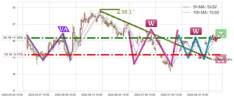 ➢ 【已确认突破】最后价格:19.91与最小【反转】第一目标价格→(08-19:10: 22.15 )相较: 上涨空间【较大】