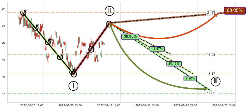 ➢ 循环浪继续向下【最低】位置(09-15:14, 17.03),匹配聚类样本比例19.77%, 可能性概率7.90%