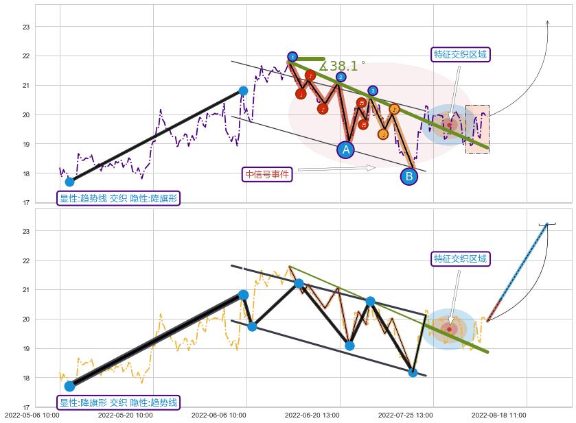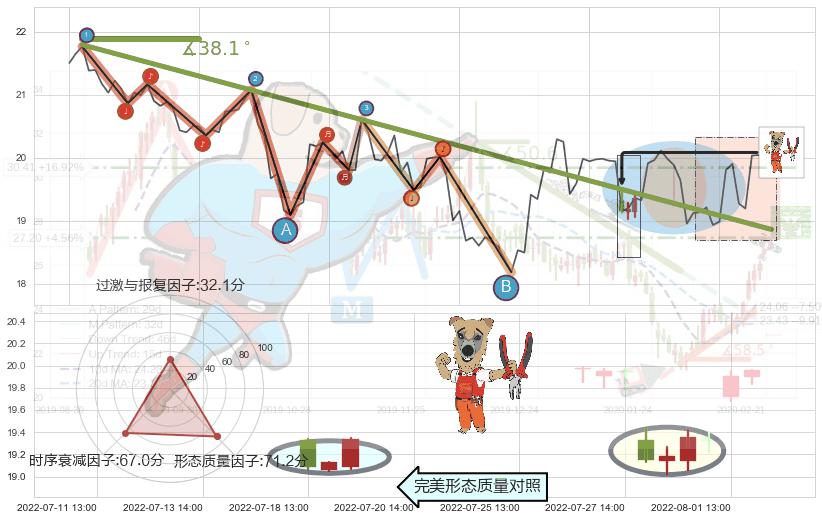 ➢ 2022-06-10 14:00-2022-07-20 14:00下跌趋势存在反转上涨[机会],其原下跌趋势的阻力位(18.86)已被突破[强支撑信号],原下跌趋势角度: 38.1˚