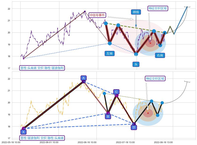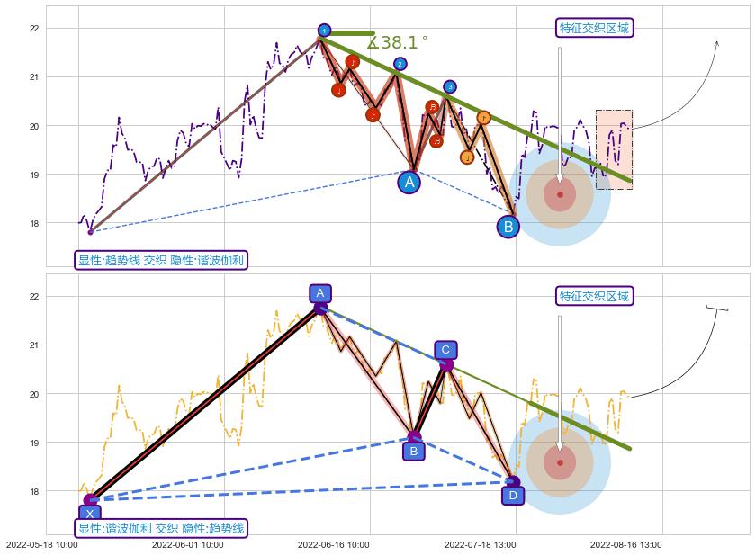 从2022-07-21 13:00至2022-08-12 14:00,共包含34个小时,阶段股价下跌-1.32%,阶段股价变动位移路程比: 1 : 29