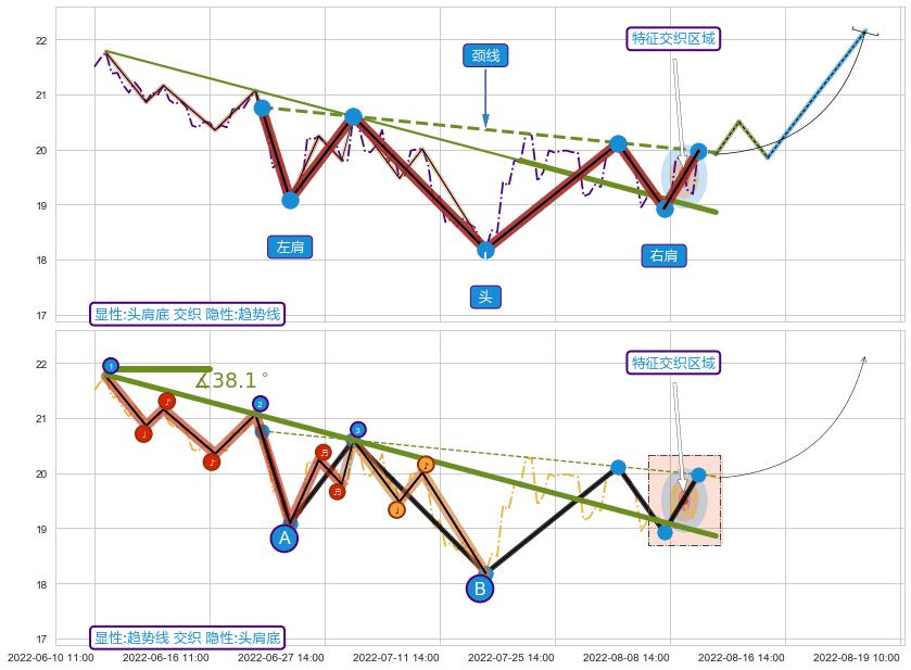 ➢ 最后的下跌趋势2022-06-10 14:00至2022-07-20 14:00:存在突破迹象,后续小反弹或者反转上涨