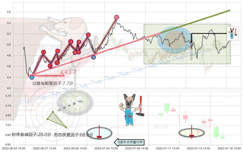➢ 🕰 价格走势在2022-07-12 13:00:00至2022-07-12 13:00:00期间形成看跌(高位倒锤头)流星线,残存影响值:-2.42