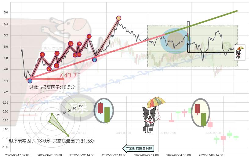 ➣ 2022-04-27 11:00-2022-06-17 09:00上升趋势存在反转[风险],其原上升趋势的支撑位(5.63)已破位[强阻力信号],原上升趋势角度: 43.7˚