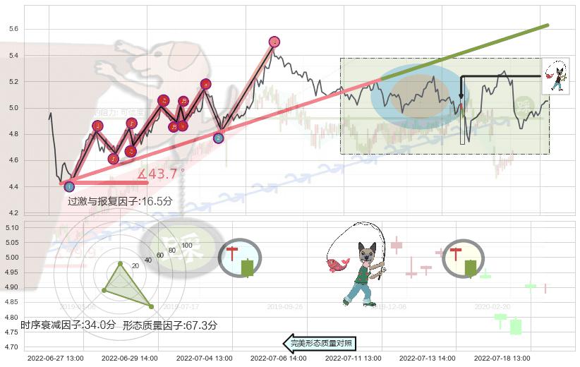 从2022-06-14 11:00至2022-07-04 14:00,共包含40个小时,阶段股价上涨4.40%,阶段股价变动位移路程比: 1 : 5
