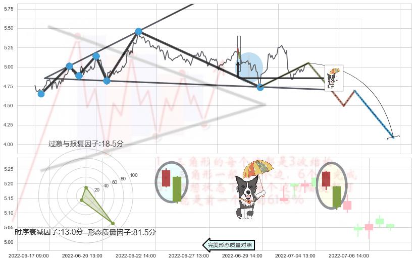 ➢ 2022-04-27 11:00-2022-06-17 09:00上升趋势存在反转[风险],其原上升趋势的支撑位(5.63)已破位[强阻力信号],原上升趋势角度: 43.7˚