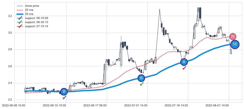 ➢ 最优均线组合共正确确认支撑阻力信号6处,正确确认率 75.00%