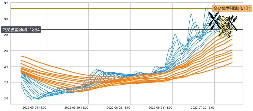➣ 30小时均线于(08-10 13:00: 2.945)形成【金叉】基于【金叉历史模型】预测金叉后最高波峰价格: 3.120, 金叉后最高价格2.970,尚未达到预测最高波峰价格, 预期继续上涨