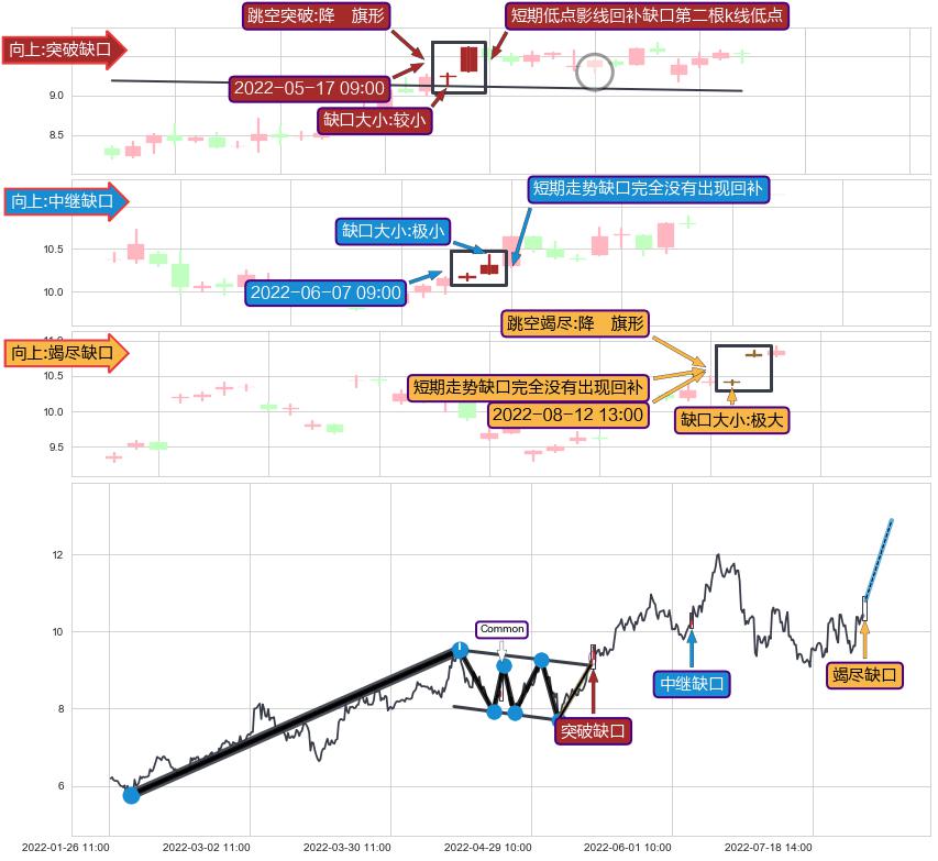 ➢ 2022-08-12 13:00形成:向上跳空【竭尽】缺口