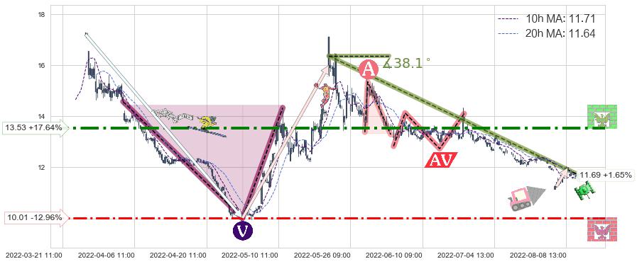 ♘ 阻力价格位13.53,可信任强度74.44%,距离最后交易2022-08-12 14:00形成的收盘价格11.50相差 +17.64%