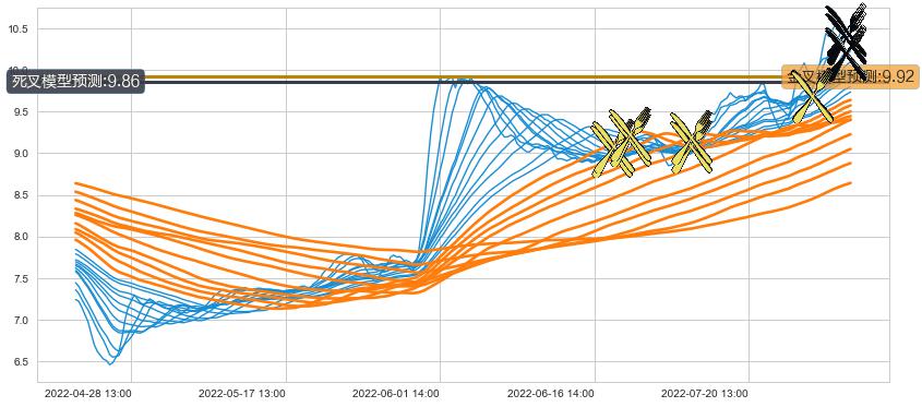 ➢ 60小时均线于(06-22 14:00: 9.21)形成【金叉】基于【金叉历史模型】预测金叉后最高波峰价格: 9.88, 金叉后最高价格10.89,已经上涨超出预测最高波峰价格, 预期回调