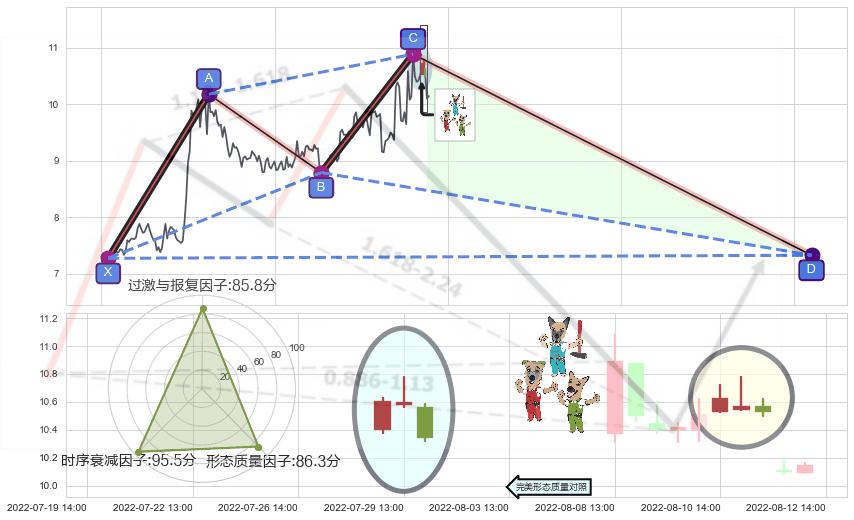 ➢ AB回撤位置在XA的47.8%,符合形态要求