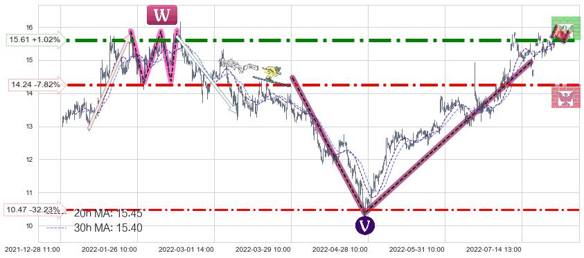 ♘ 阻力价格位15.61,可信任强度92.37%,距离最后交易2022-08-12 14:00形成的收盘价格15.45相差 +1.02%