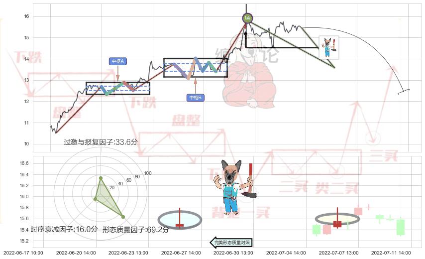 ➢ 🕰 价格走势在2022-07-06 13:00:00至2022-07-06 13:00:00期间形成看跌(高位倒锤头)流星线,残存影响值:-3.03