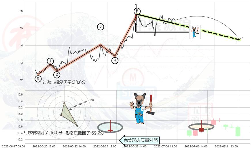 ➢ 缠论买卖点上升缠:1卖回调拐点 🔜 波浪理论上涨浪:浪5回调拐点 综合量化分数:39.54 【偏空】