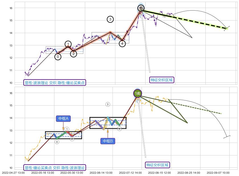 ➢ 缠论买卖点:上升缠中枢AB形成后猜想拐点1卖已到达,猜想后续持续下跌(均值回复)