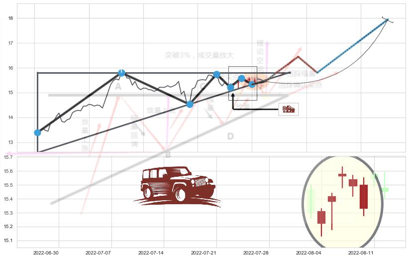 ➣ AI智能【预测买2】: 保守型 买点 →(08-18:09: 15.80 )预测突破后的【回抽确认】
