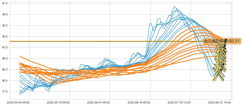 ➣ 60小时均线于(08-12 13:00: 87.82)形成【金叉】基于【金叉历史模型】预测金叉后最高波峰价格: 92.32, 金叉后最高价格87.87,尚未达到预测最高波峰价格, 预期继续上涨