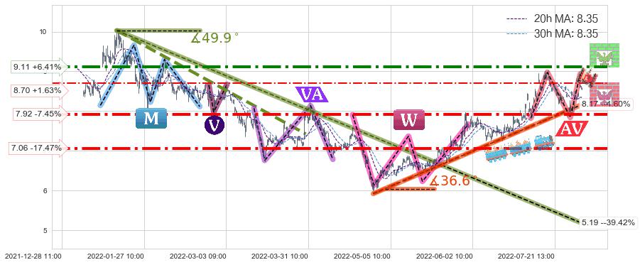 ♘ 支撑价格位7.06,可信任强度71.77%,距离最后交易2022-08-12 14:00形成的收盘价格8.56相差 -17.47%