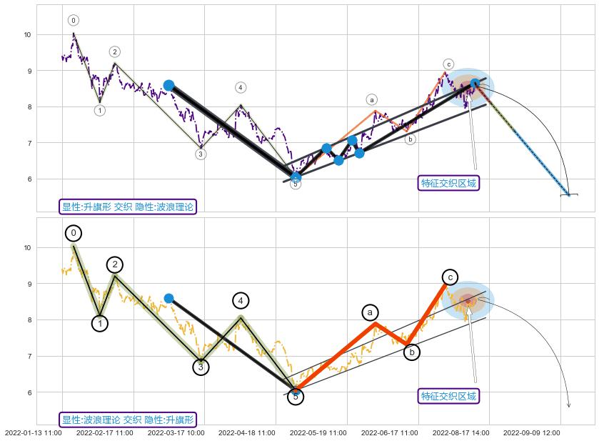 ➢ 波浪理论:猜想击穿突破c点后继续上涨 → 上涨 → 机会信号 → 小趋势跟踪