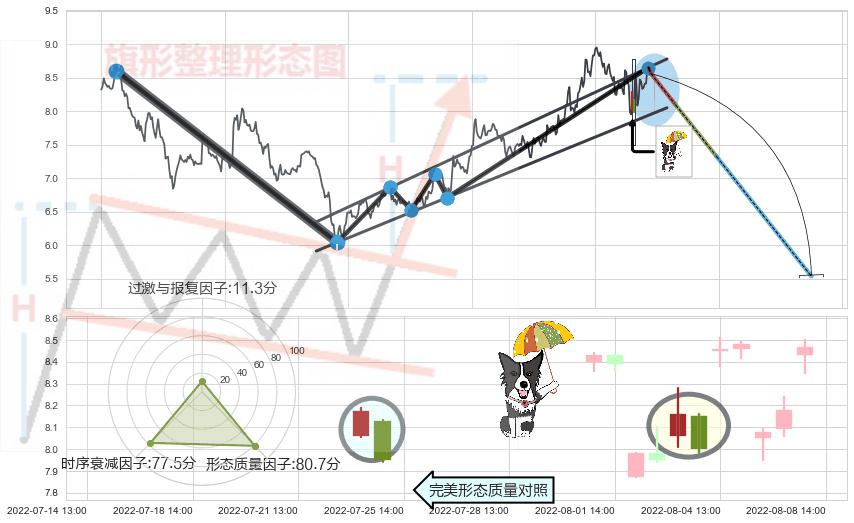 ➢ 🕰 价格走势在2022-08-03 00:00:00至2022-08-03 00:00:00期间形成看涨(低位)倒锤头线,残存影响值:3.30
