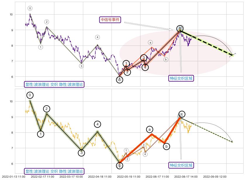 从2022-04-12 10:00至2022-05-31 11:00,共包含162个小时,阶段股价上涨13.62%,阶段股价变动位移路程比: 1 : 10