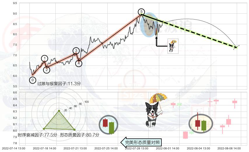 ➢ 🕰 价格走势在2022-08-04 13:00:00至2022-08-08 13:00:00期间形成低档五阳线,残存影响值:7.66