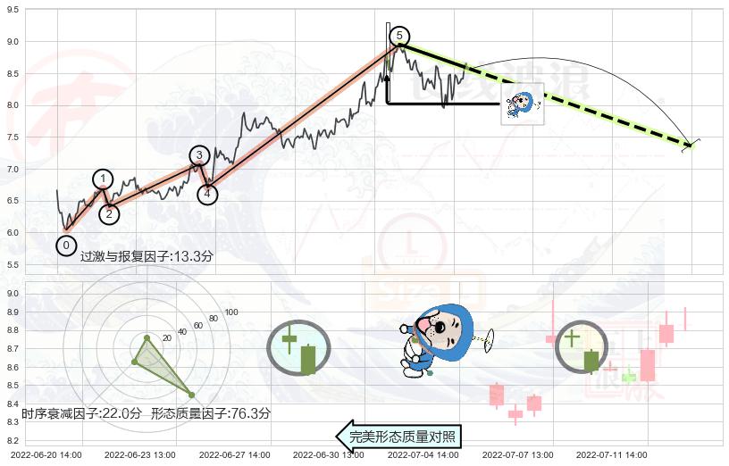 ➢ 下跌螺旋桨 🔜 波浪理论上涨浪:浪5回调拐点 综合量化分数:46.45 【中性】