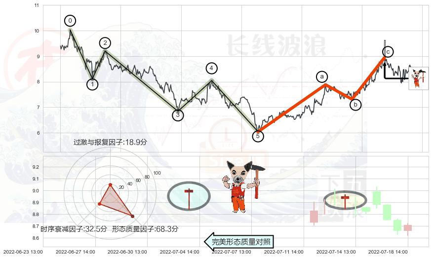 ➢ 锤头线(锤子线) 🔜 波浪理论击穿突破C点继续上涨 综合量化分数:53.30 【中性】
