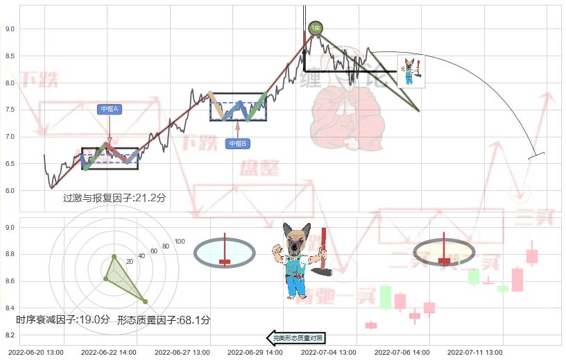 ➢ 🕰 价格走势在2022-07-07 13:00:00至2022-07-07 13:00:00期间形成看跌(高位倒锤头)流星线,残存影响值:-2.79