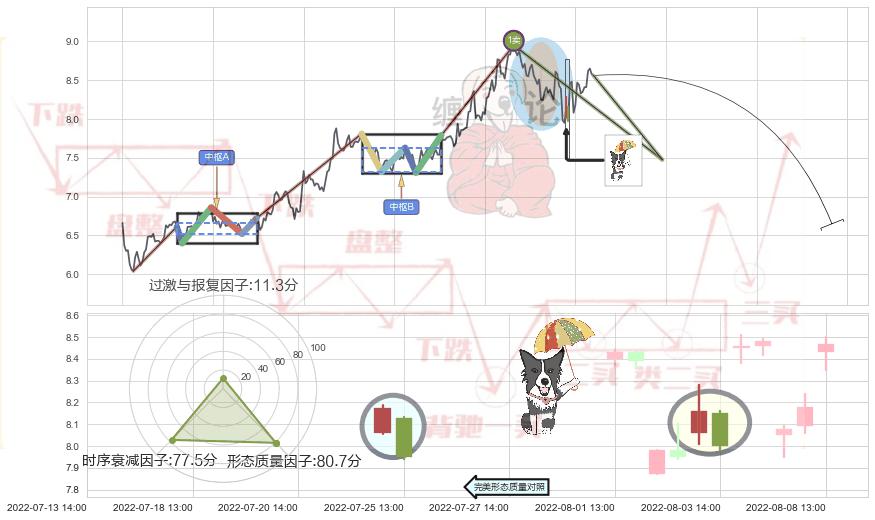 从2022-07-13 14:00至2022-08-12 14:00,共包含45个小时,阶段股价下跌-3.64%,阶段股价变动位移路程比: 1 : 16