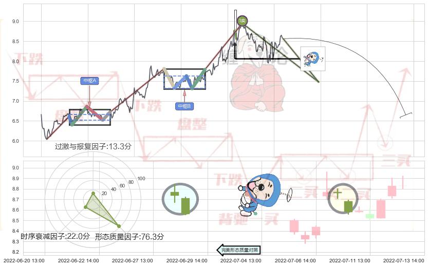 ➢ 🕰 价格走势在2022-07-07 14:00:00至2022-07-08 13:00:00期间形成下跌螺旋桨,残存影响值:-2.35
