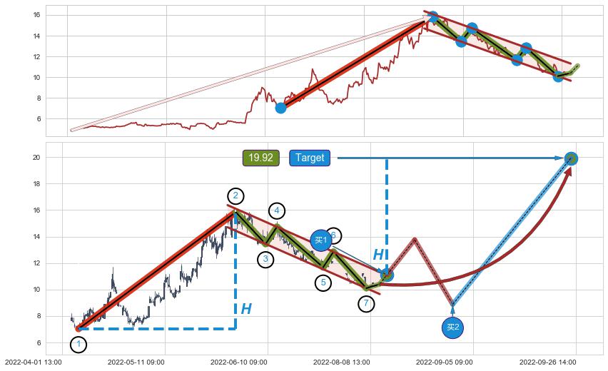 ➣ 最小中继整理涨幅→𝐇: 8.81 (𝐇旗杆的长度:旗杆起点→顶点)