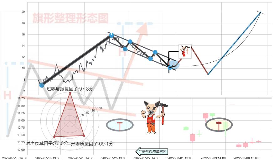 ➢ 🕰 价格走势在2022-08-03 13:00:00至2022-08-03 13:00:00期间形成锤头线(锤子线),残存影响值:6.93