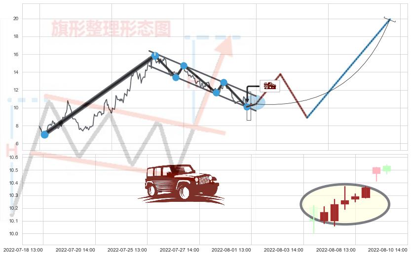 ➢ 🕰 价格走势在2022-08-04 14:00:00至2022-08-08 14:00:00期间形成低档五阳线,残存影响值:7.83