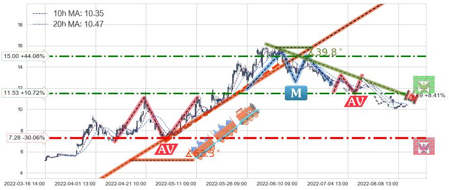 ♘ 阻力价格位15.00,可信任强度66.93%,距离最后交易2022-08-12 14:00形成的收盘价格10.41相差 +44.08%