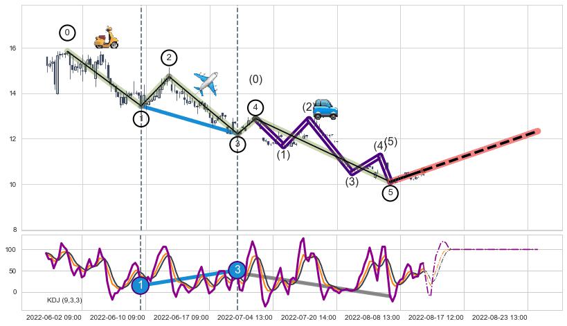 ➣ 波浪理论:临近C点,猜想达到c点后小回调终止反转上涨 → 上涨 → 【拐点】临近 → 阶段均值回复结束后继续大周期趋势跟踪