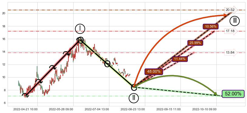 ➢ 循环浪继续向上【最低】位置(09-23:12, 13.84),匹配聚类样本比例23.84%, 可能性概率11.44%