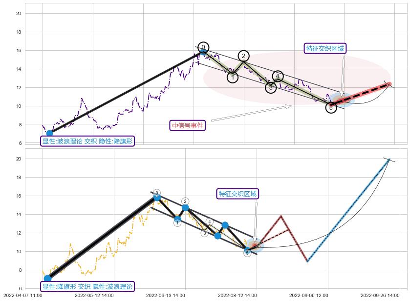 ➢ 波浪理论与降旗形信号事件周期长度级别相同,同周期信号事件