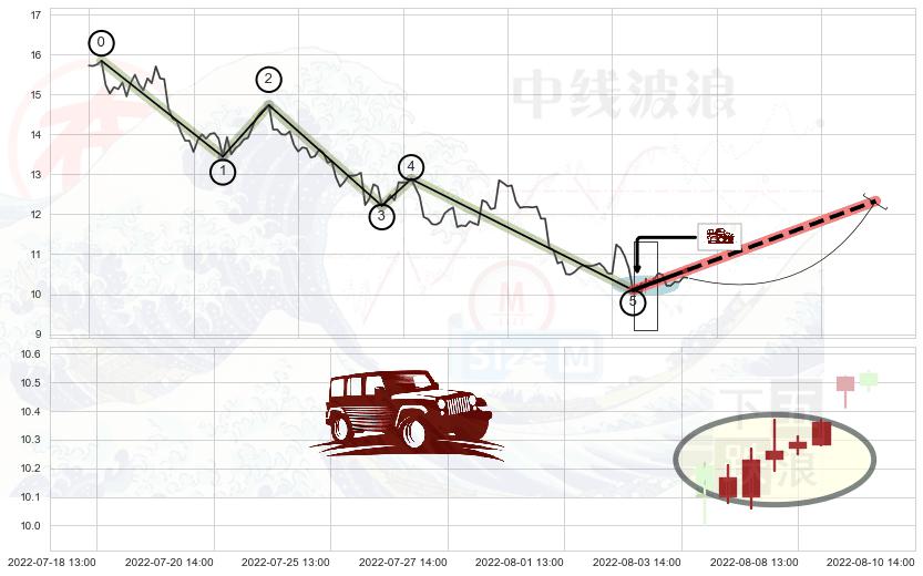 ➢ 🕰 价格走势在2022-08-04 14:00:00至2022-08-08 14:00:00期间形成低档五阳线,残存影响值:7.83