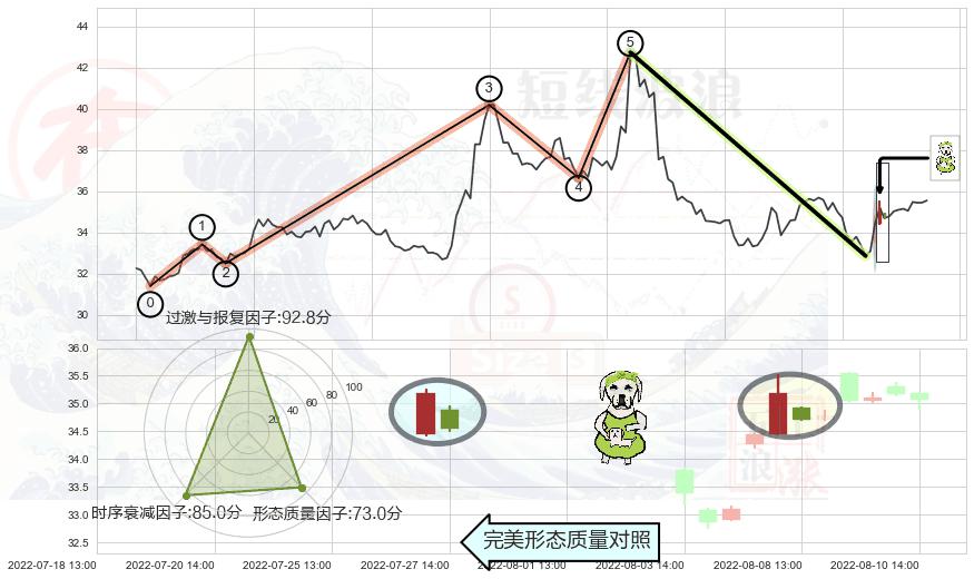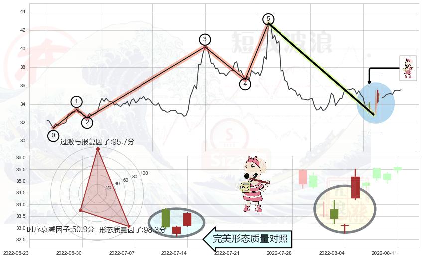 从2022-07-15 14:00至2022-08-12 14:00,共包含41个小时,阶段股价上涨6.69%,阶段股价变动位移路程比: 1 : 6