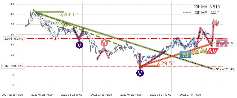 ➣ 【仅预测突破】最后价格:3.750与预测突破价格:3.385→【空间较大】后续最小【反转】第一目标价格→(08-19:12: 3.046 )