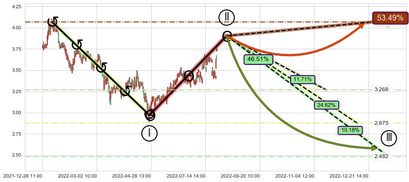 ➢ 循环浪继续向下【最高】位置(11-15:14, 3.268),匹配聚类样本比例25.18%, 可能性概率11.71%
