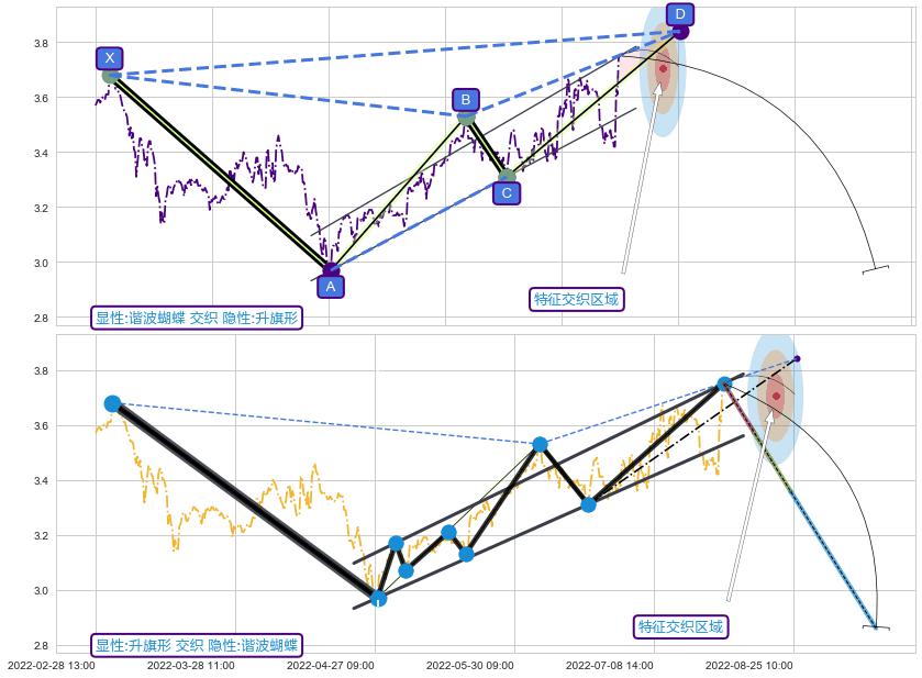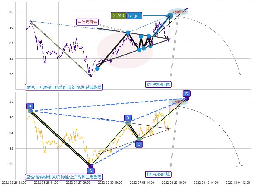 ➢ 上升对称三角整理属【中级别信号事件】谐波蝴蝶属【长级别信号事件】中长周期组合信号事件,中长事件长度比40.09%