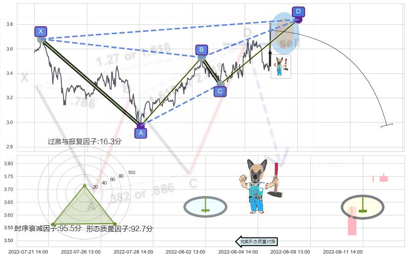 ➣ D点拟合预测价格3.840,距离最后交易收盘价格3.750相差 +2.41%