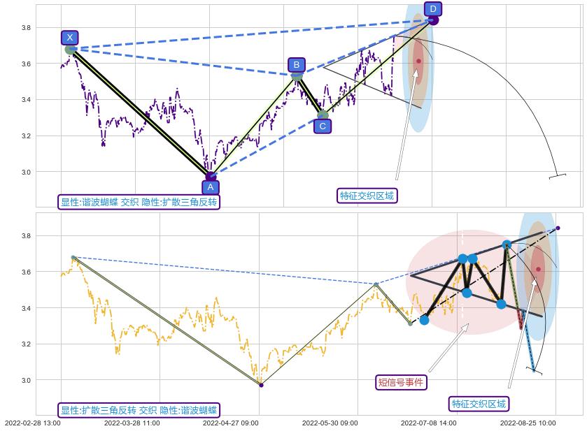➢ 扩散三角反转属【短级别信号事件】谐波蝴蝶属【长级别信号事件】长短周期组合信号事件, 短长事件长度比19.13%