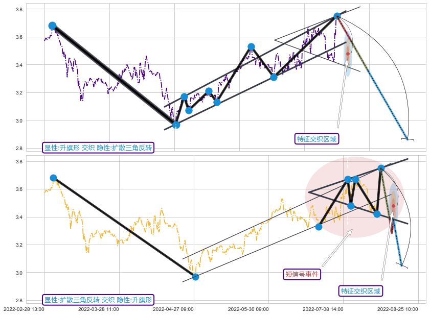 ➢ 扩散三角反转属【短级别信号事件】升旗形属【长级别信号事件】长短周期组合信号事件, 短长事件长度比19.13%
