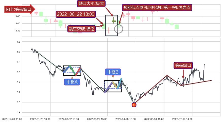 从2022-06-01 09:00至2022-06-30 14:00,共包含79个小时,阶段股价下跌-2.37%,阶段股价变动位移路程比: 1 : 20