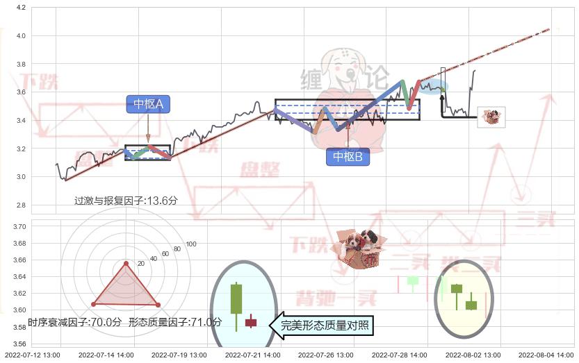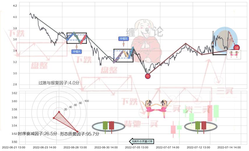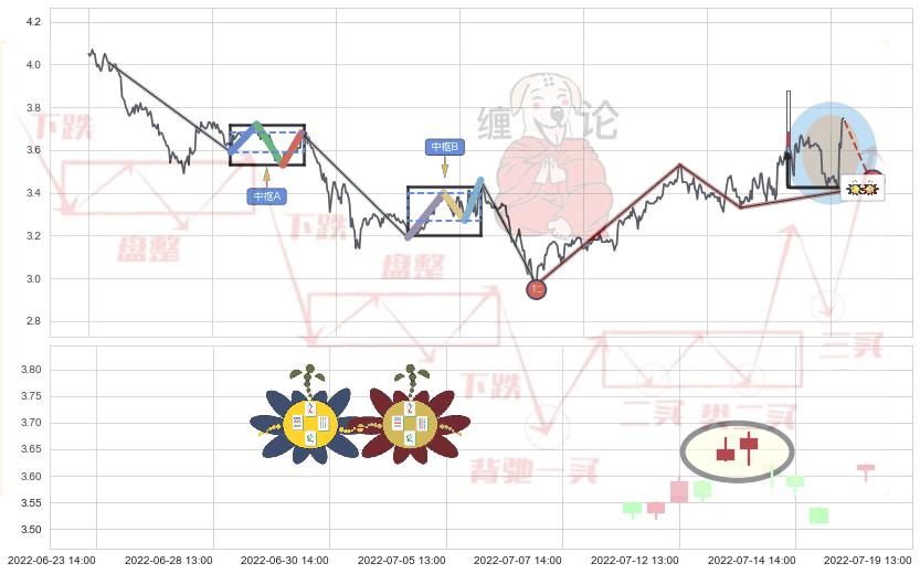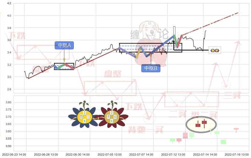 ➣ 【中枢B】:06-07:14-07-20:14,中枢由7笔构成,共88交易小时, ZG=3.480, ZD=3.470